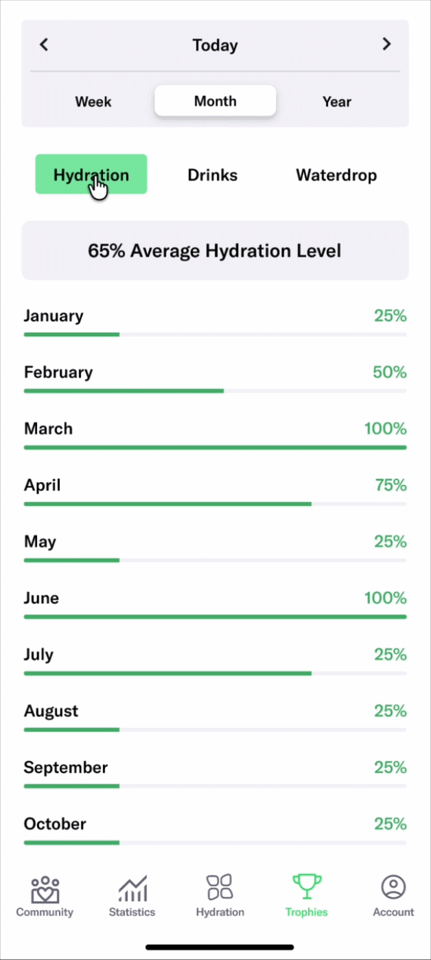 61% of users who activated reminders drink when prompted. It is a simple mechanic, but it sits at the heart of the app's job. We built it to interrupt the right moment, not just to send notifications.